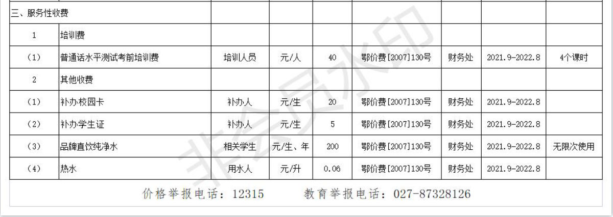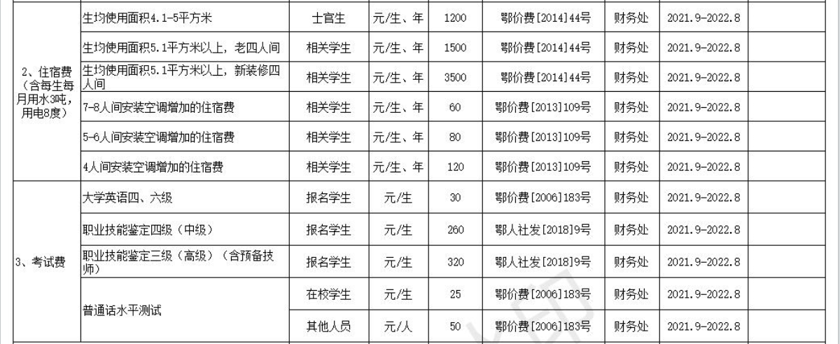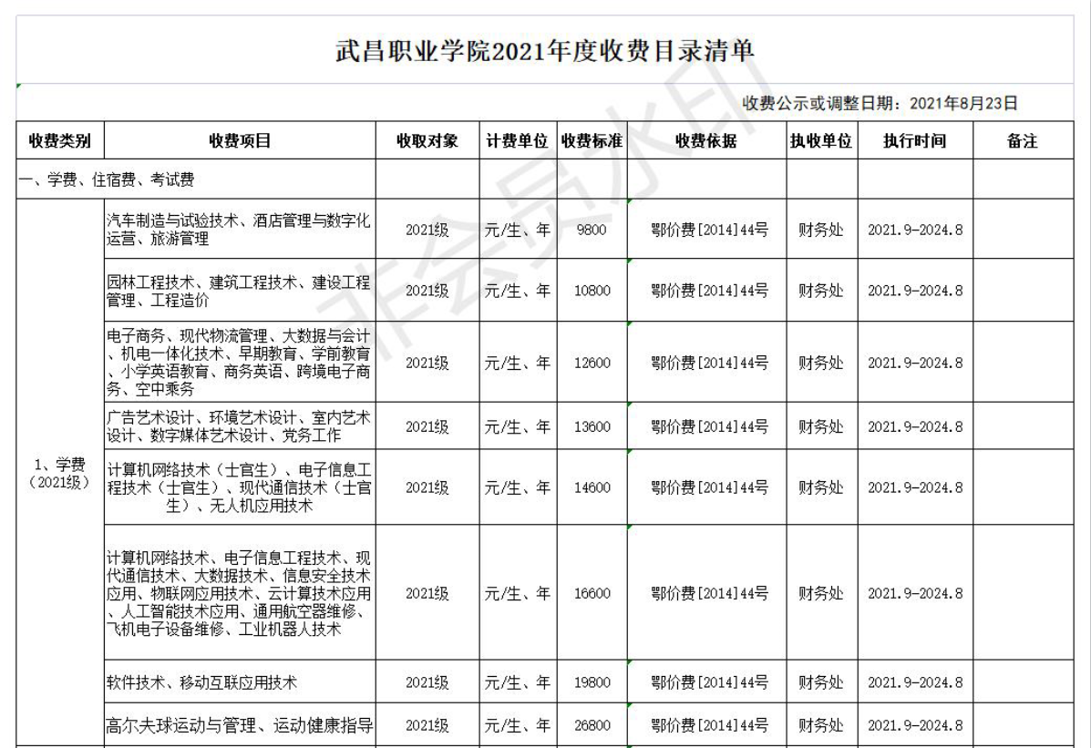 新葡澳娱乐赌城2021年度收費目錄清單