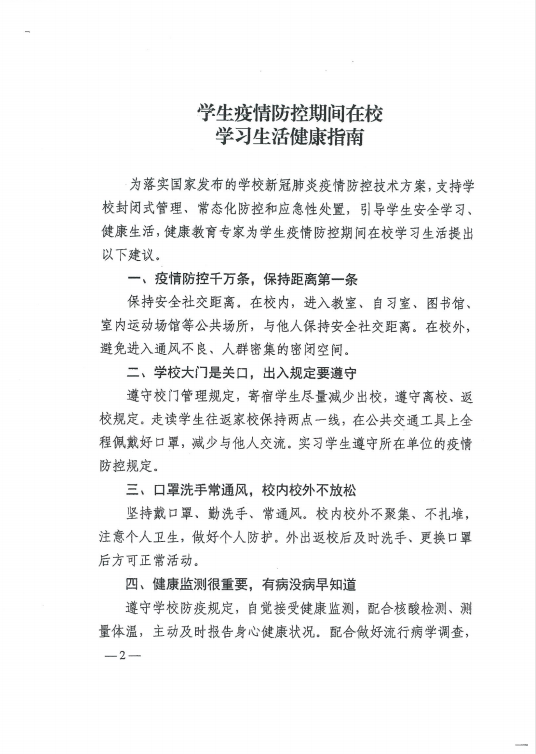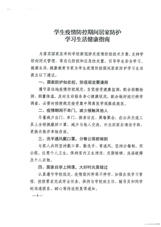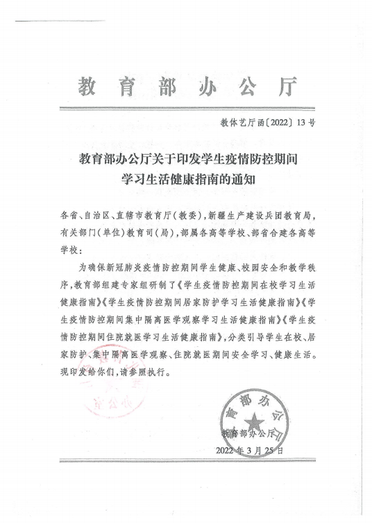 教育部辦公廳關于印發學生疫情防控期間 學習生活健康指南的通知