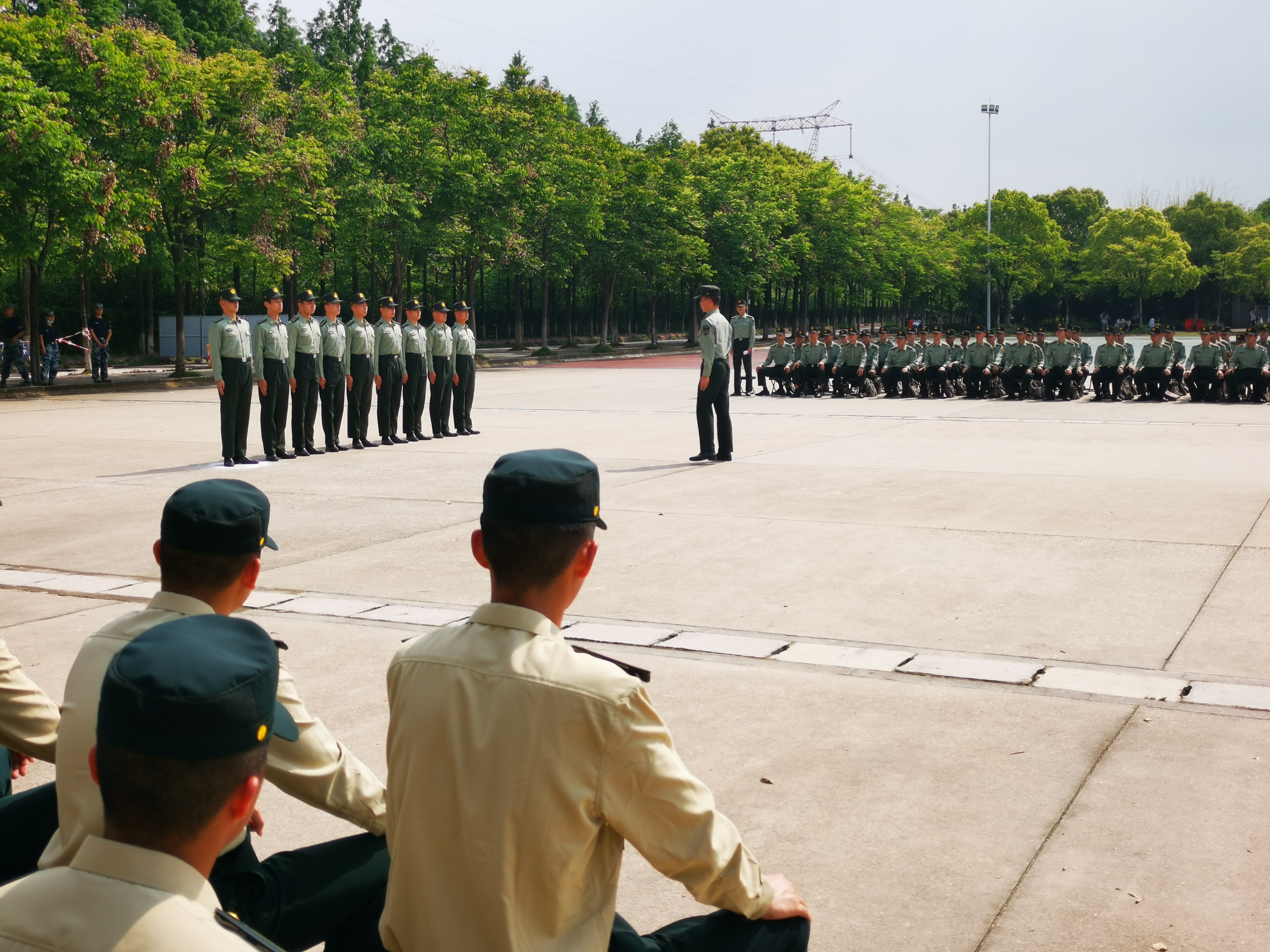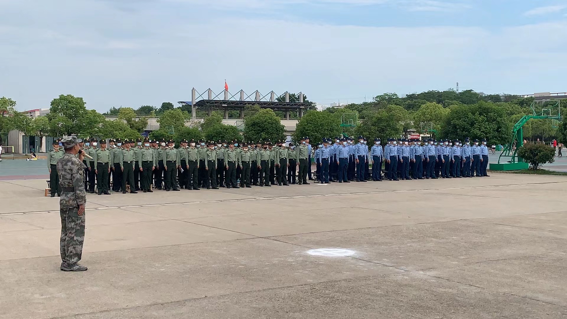 此次軍士生隊列會操是教研室年度軍事科目教學計劃中的重要環節,旨在通過會操檢驗每個教學班前期教學訓練成果。為期4天的隊列會操,21級軍士生各教學班學員面對多變的天氣及環境因素幹擾,不懼烈日,直面風雨,高質量完成預定會操内容,較完整展現了應有的精神風貌。放眼望去,籃球場西側軍裝亮眼,白色、天藍色、棕綠色、墨綠色錯落有緻、熠熠生輝。